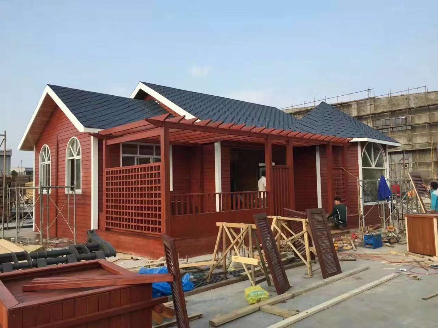在施工四川防腐木木屋前需做好以下5项准备工作: 1.防水层所用的材料应由材料质量证明文件,并经指定的质 量检测部门认证,确保其质量符合技术要求。进场材料应按规定 抽样复验